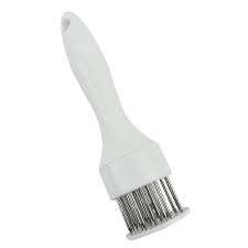 Em aço perfuram a carne delicadamente, quebrando as fibras e permitindo que os temperos penetrem melhor, proporcionando um cozimento mais uniforme e sabor intenso.