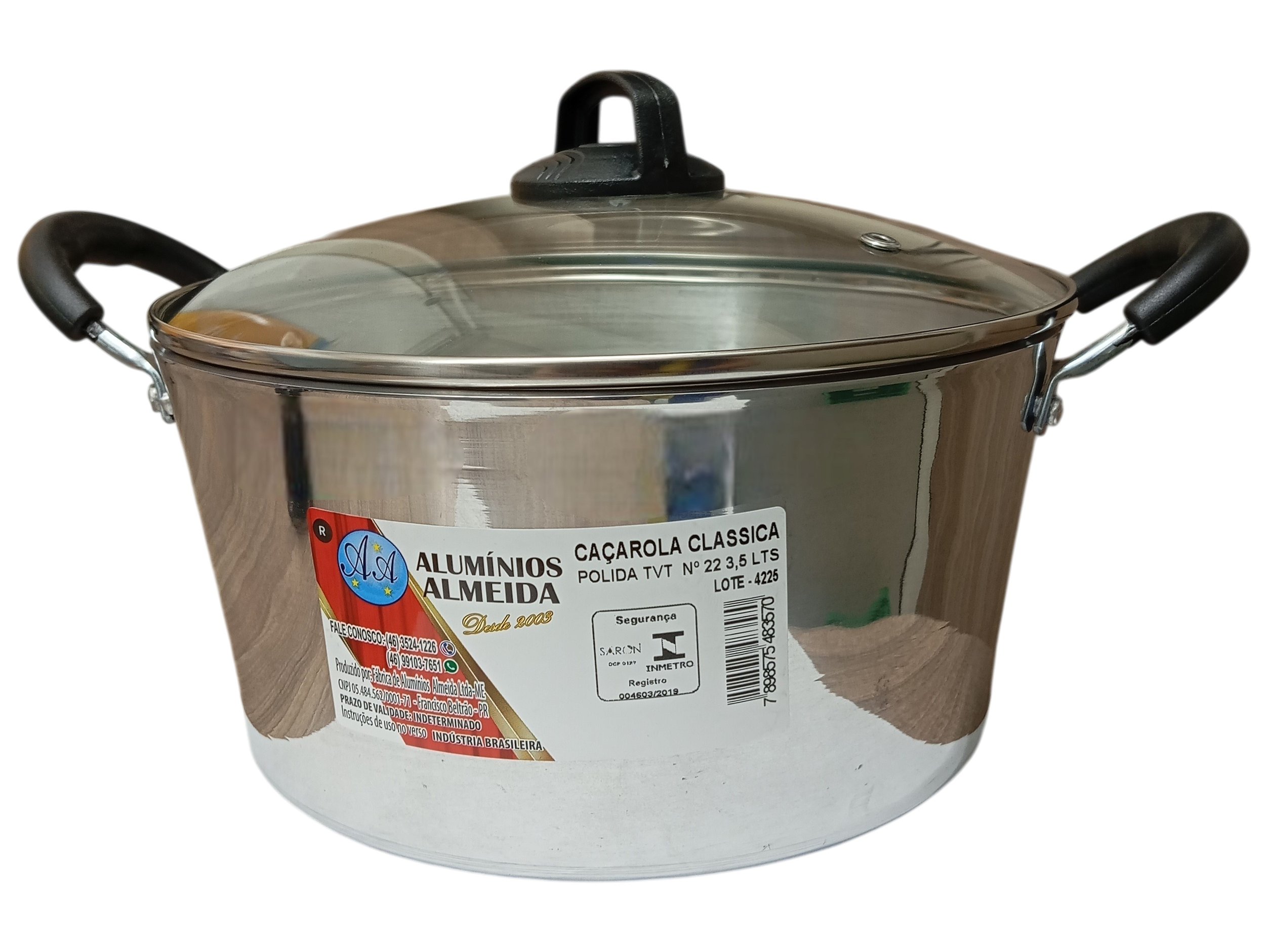 A Caçarola Classica Polida tampa de vidro Nº22 Almeida em alumínio é ideal para preparos maiores e refeições em maior quantidade.