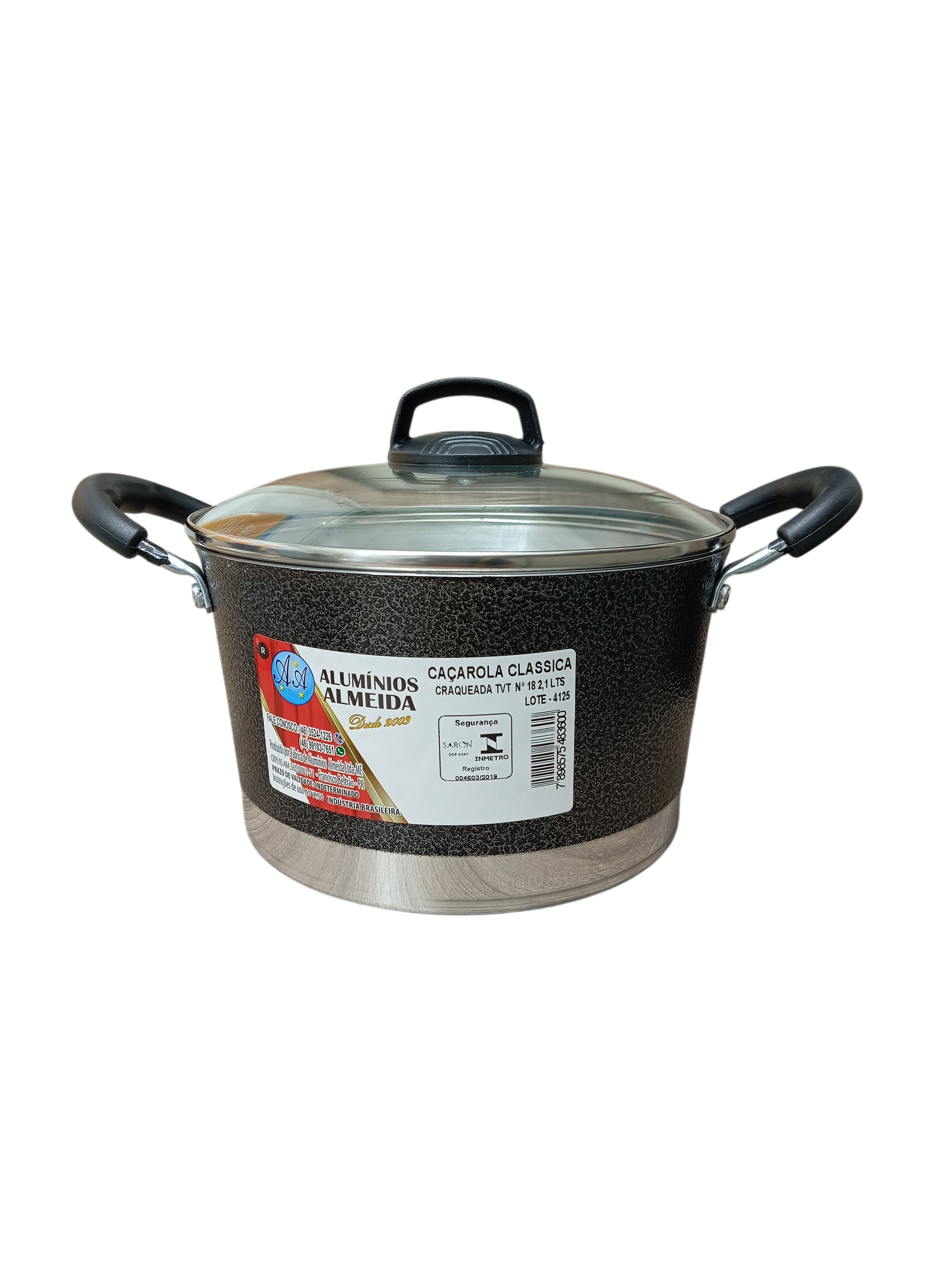 A Caçarola Clássica TVT Craqueada Nº18 com tampa de vidro é ideal para o preparo de refeições do dia a dia com praticidade, resistência e um acabamento diferenciado.