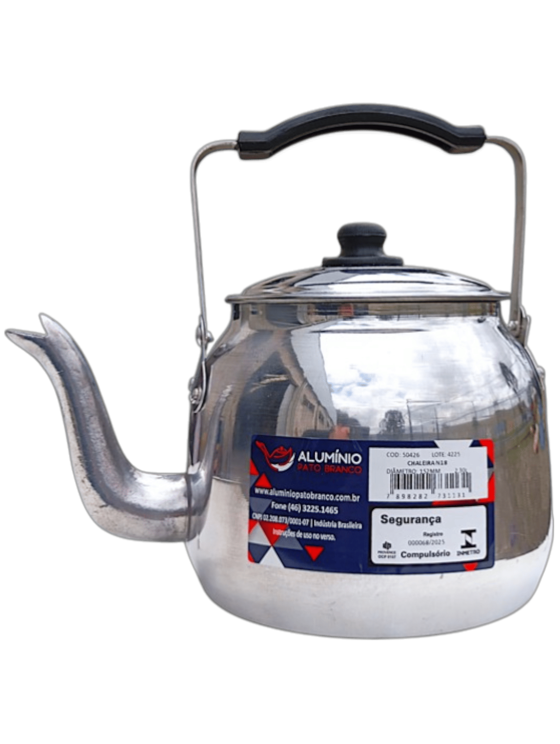 Seu design tradicional aliado à resistência do alumínio garante durabilidade, facilidade no manuseio e limpeza, tornando a chaleira uma excelente escolha para cozinhas que buscam praticidade e eficiência.