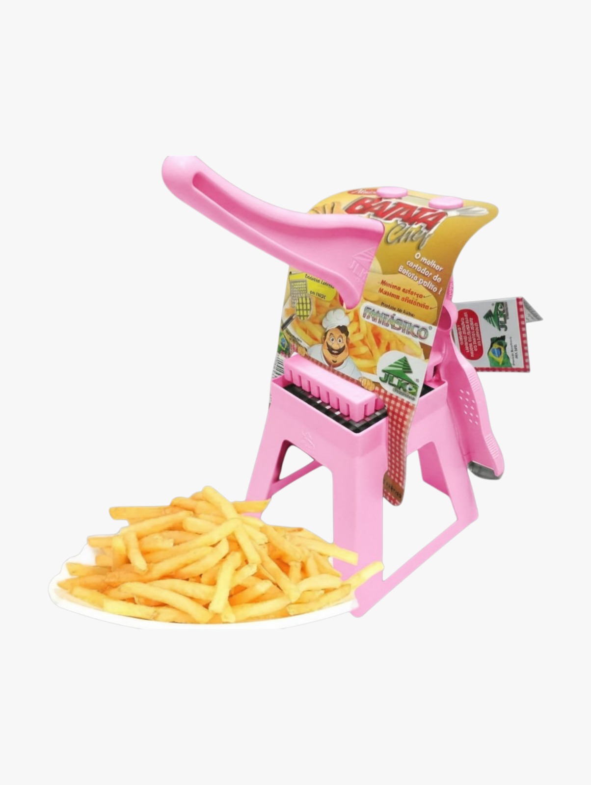 Equipado com lâminas resistentes, o cortador transforma batatas inteiras em palitos prontos para fritar, assar ou preparar na air fryer. Seu design funcional oferece maior estabilidade e facilidade no manuseio, tornando o processo de corte muito mais prático.