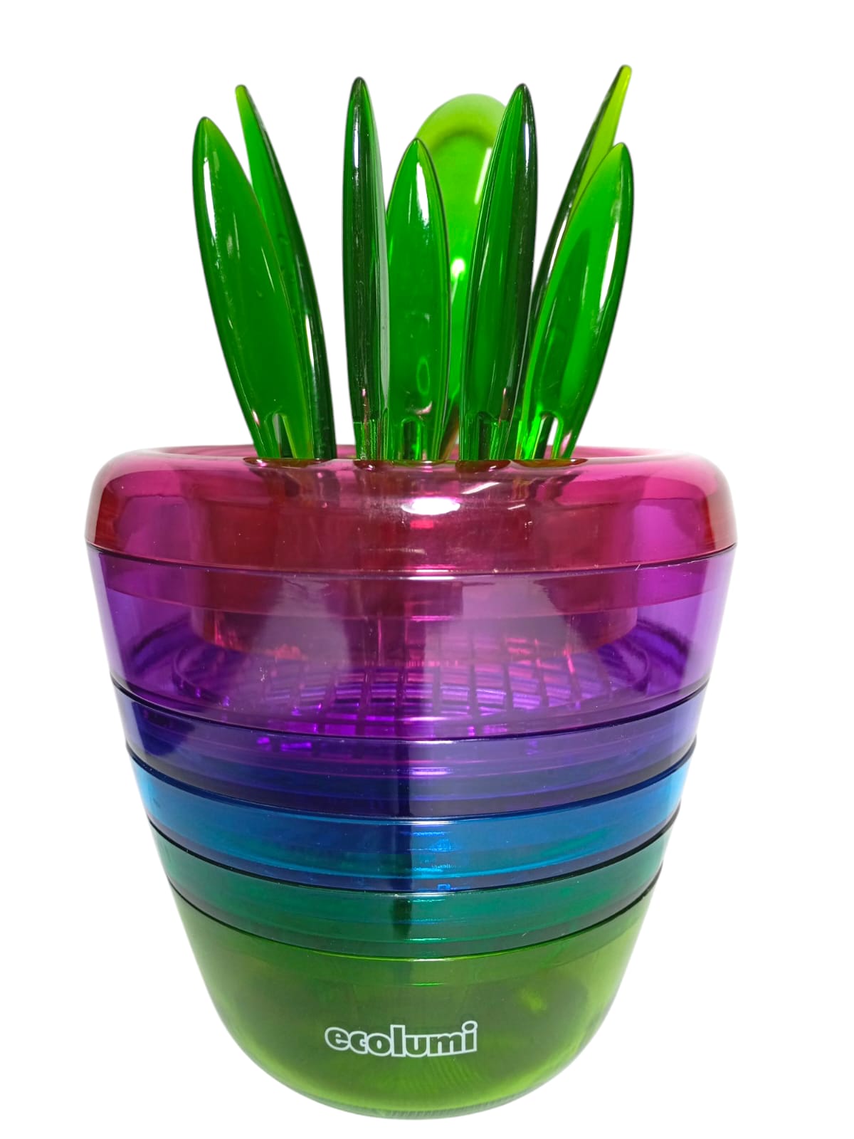 Fabricado em plástico resistente e leve, o kit é ideal para uso diário e perfeito para preparar saladas de frutas, sobremesas, sucos e lanches saudáveis.
