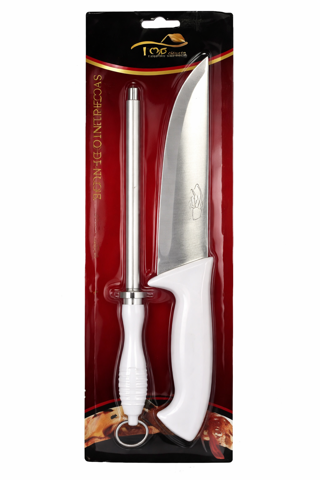O kit faca com chaira 8” Maxibras é ideal para quem busca corte preciso, alto desempenho e praticidade no dia a dia. Com lâmina de 8 polegadas, é perfeito para cortar carnes com facilidade, sendo indispensável no churrasco ou na cozinha. Acompanha chaira para afiação, garantindo que a faca esteja sempre com o fio afiado e pronto para uso. Produzido com materiais resistentes, oferece excelente durabilidade e segurança no manuseio. Um kit profissional de faca e chaira ideal para quem valoriza qualidade, precisão e eficiência no corte.