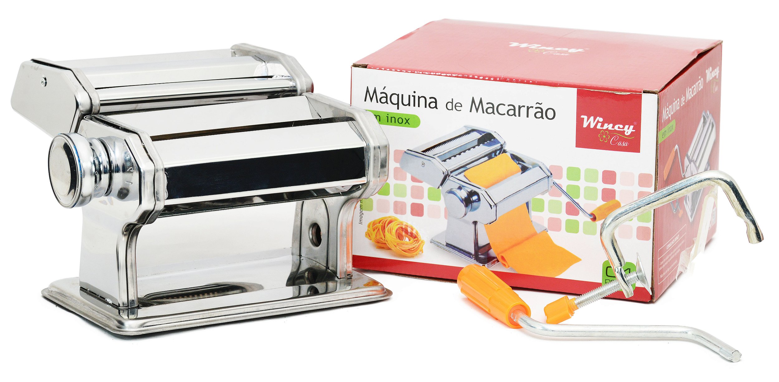 Com estrutura resistente em aço inox, ela garante durabilidade e higiene no preparo dos alimentos. Seu sistema manual com manivela e cabo plástico facilita o uso, permitindo abrir e cortar massas com facilidade.