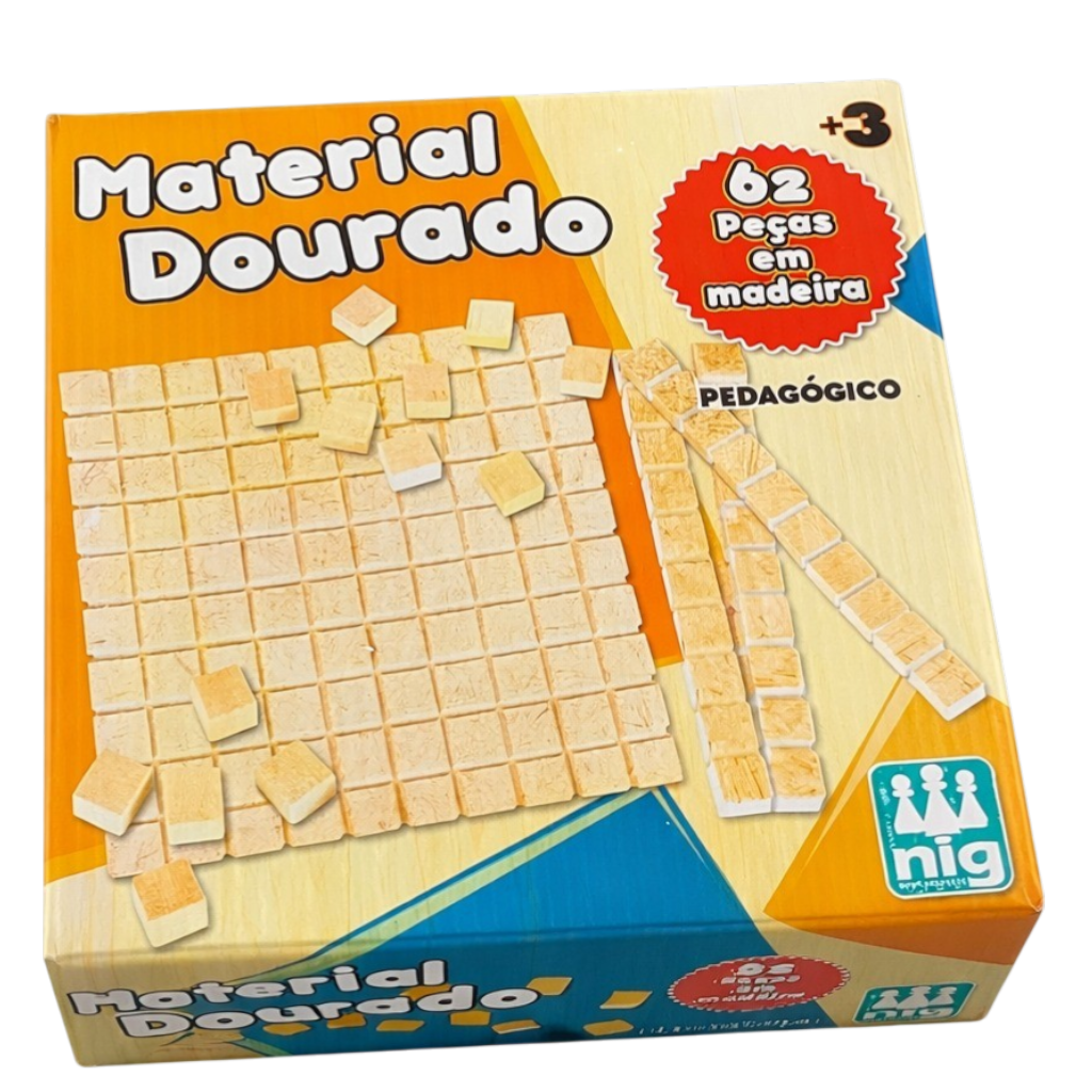 O Material Dourado 62 Peças Nig é um recurso educativo essencial para o ensino de matemática de forma prática e visual. Ideal para auxiliar na compreensão de unidades, dezenas e centenas, torna o aprendizado mais dinâmico e eficiente. Indicado para crianças em fase escolar, estimula o raciocínio lógico, a concentração e a coordenação motora. Produzido com material resistente, garante durabilidade para uso em escolas ou em casa. Uma excelente ferramenta pedagógica para facilitar o aprendizado de maneira interativa e envolvente.