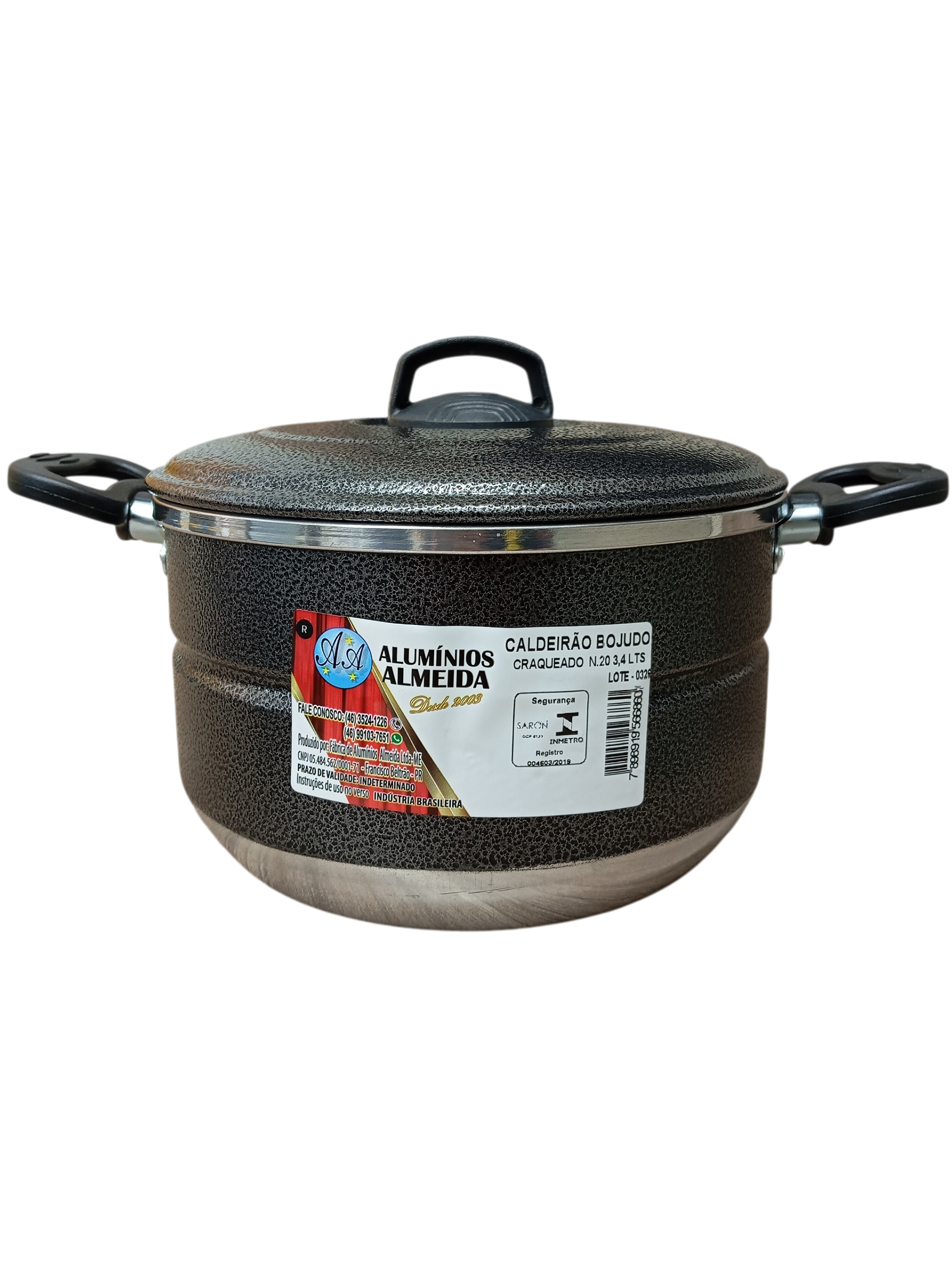 O Caldeirão Bojudo Craqueado Nº20 Almeida é ideal para preparos em maior quantidade, oferecendo mais profundidade e melhor retenção de calor.
