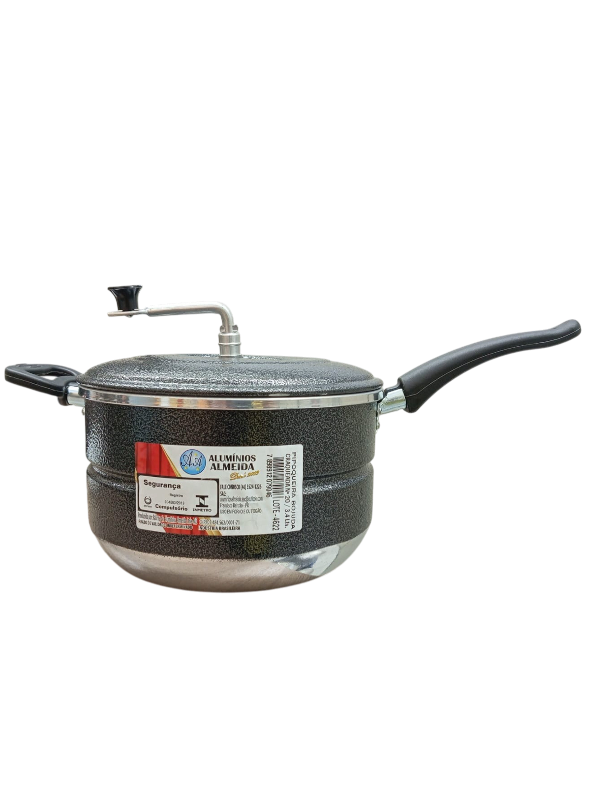 Seu acabamento craqueado oferece maior durabilidade e resistência ao uso diário, além de um visual moderno na cozinha. O tamanho Nº20 é perfeito para preparar porções generosas de pipoca, sendo ideal para momentos de lazer em família, filmes ou reuniões com amigos.