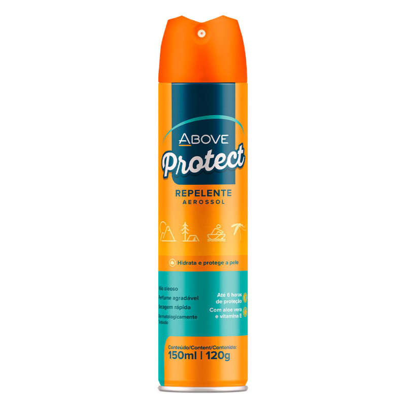 O Above Repelente de Insetos Aerossol 150ml é indicado para auxiliar na proteção contra insetos, oferecendo aplicação prática e rápida.